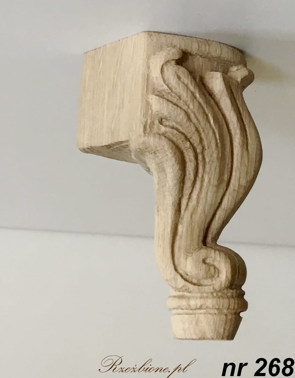 Nóżka taka może być wykorzystywana do mebli, takich jak konsole, komody czy szafki, i dodawać im elegancji i klasycznego wyglądu. Rzeźbienie pozwala na stworzenie oryginalnego i niepowtarzalnego elementu, który będzie wyjątkowym dodatkiem do wnętrza. Na zamówienie można wybrać odpowiednie wymiary i styl nóżki, a także gatunek drewna, aby pasował do charakteru pomieszczenia.
